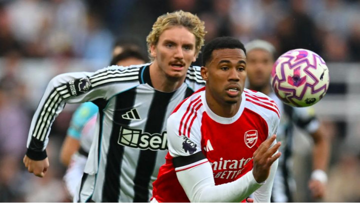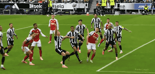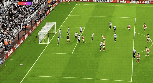 第34分钟,纽卡斯尔以其人之道还其人之身,利用策略 底线球,托纳利传中,沃尔特马德力压加布里埃尔,头槌破门。