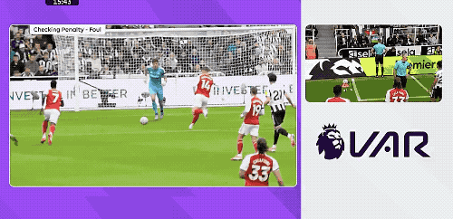 裁判 反复观看后,认为波普最先碰到了皮球,取消十二码球判决 ,纽卡斯尔球迷一片掌声。